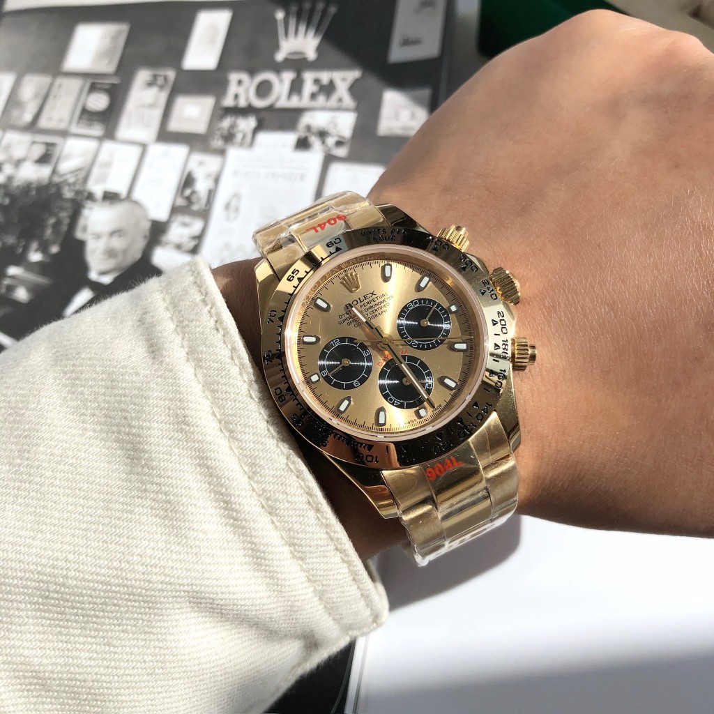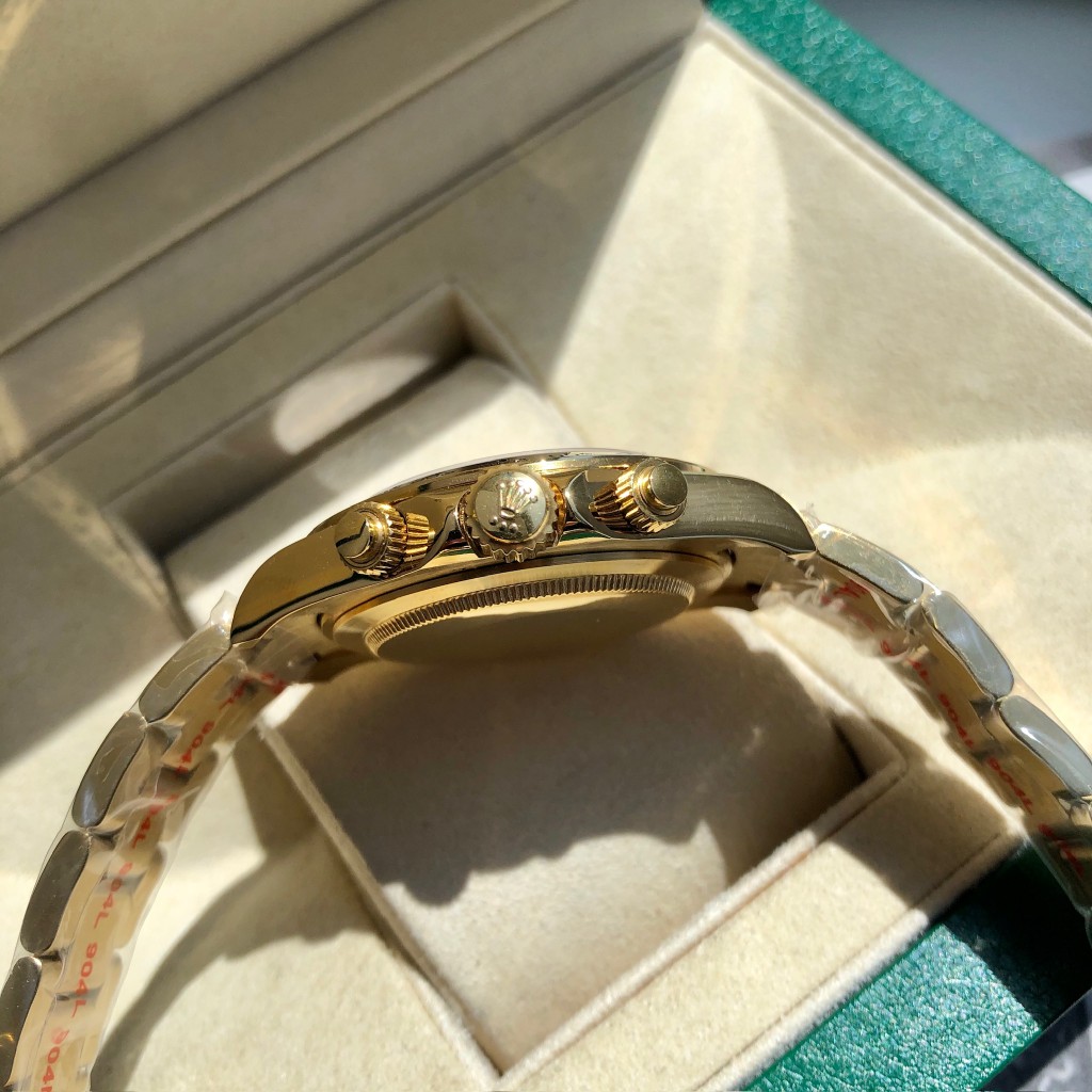 Introducing the high-end replica of the iconic Oyster Perpetual Cosmograph Daytona. Designed for those who appreciate the perfect blend of craftsmanship and elegance, this exquisite timepiece is a must-have addition to your collection. Crafted in stunning yellow gold, it mirrors the sophistication and prestige associated with the original design.